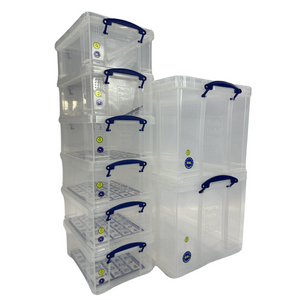 • Set of 2 x 84 Litre & 6 x 9 Litre Clear Strong Really Useful Home Storage Boxes with Lids