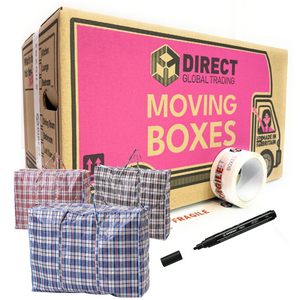 • XL Moving House Package 40 Boxes, 2 Rolls of 60m Bubble, 10 Giant Black Bags 6 XL Laundry Clothes Bags 12 Rolls of Tape and 4 Marker Pens